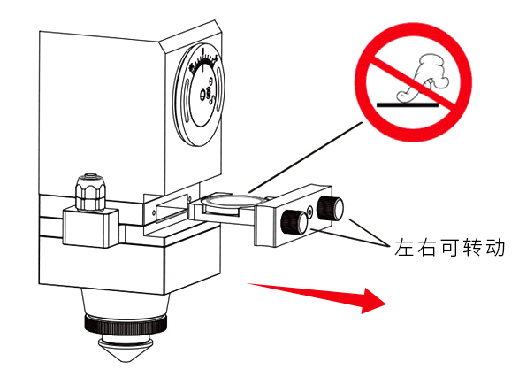 4、撕掉激光頭上的保護膜,將保養(yǎng)好的保護鏡片套(包含鏡片)平著插入激光并鎖緊;
