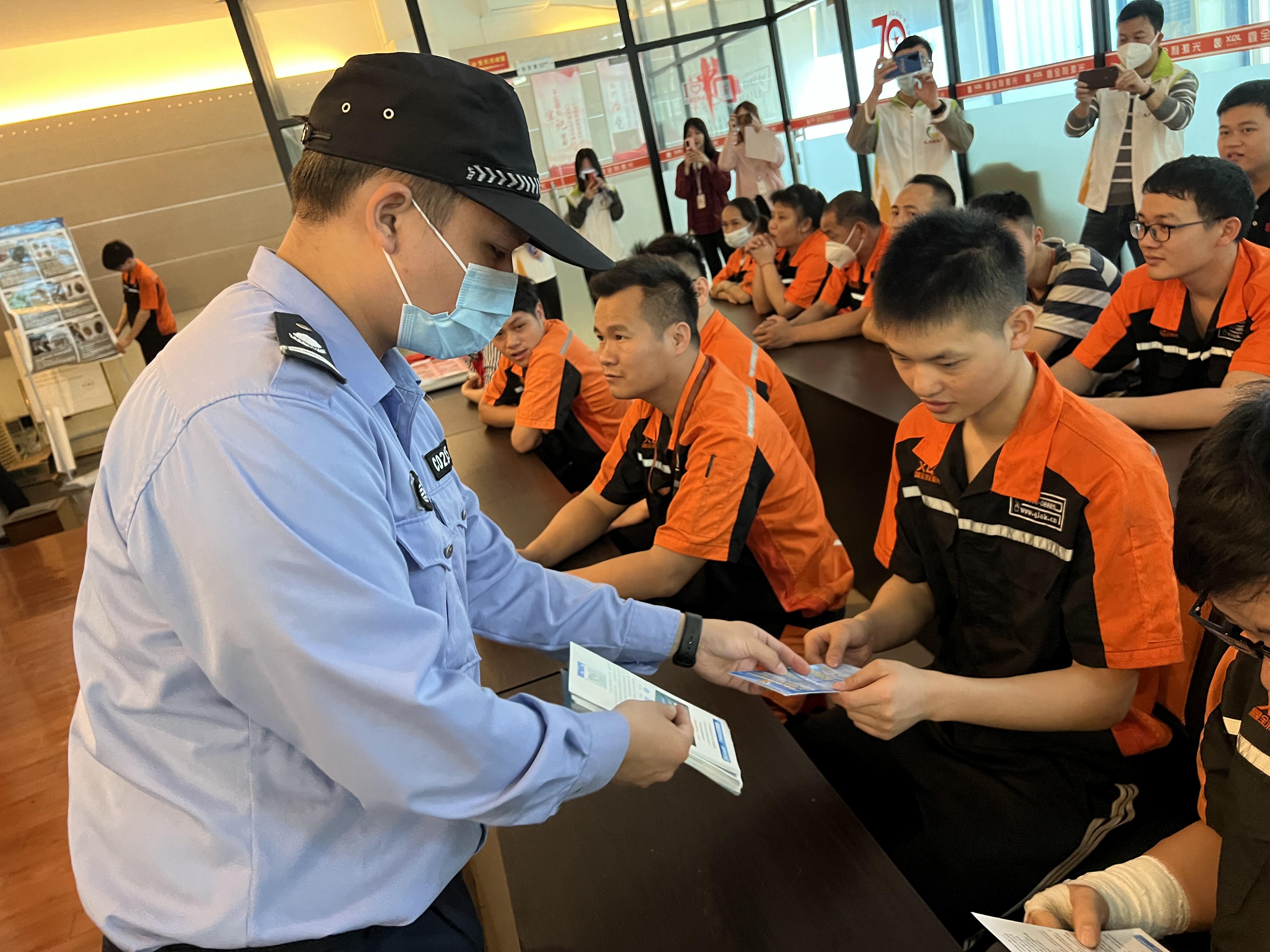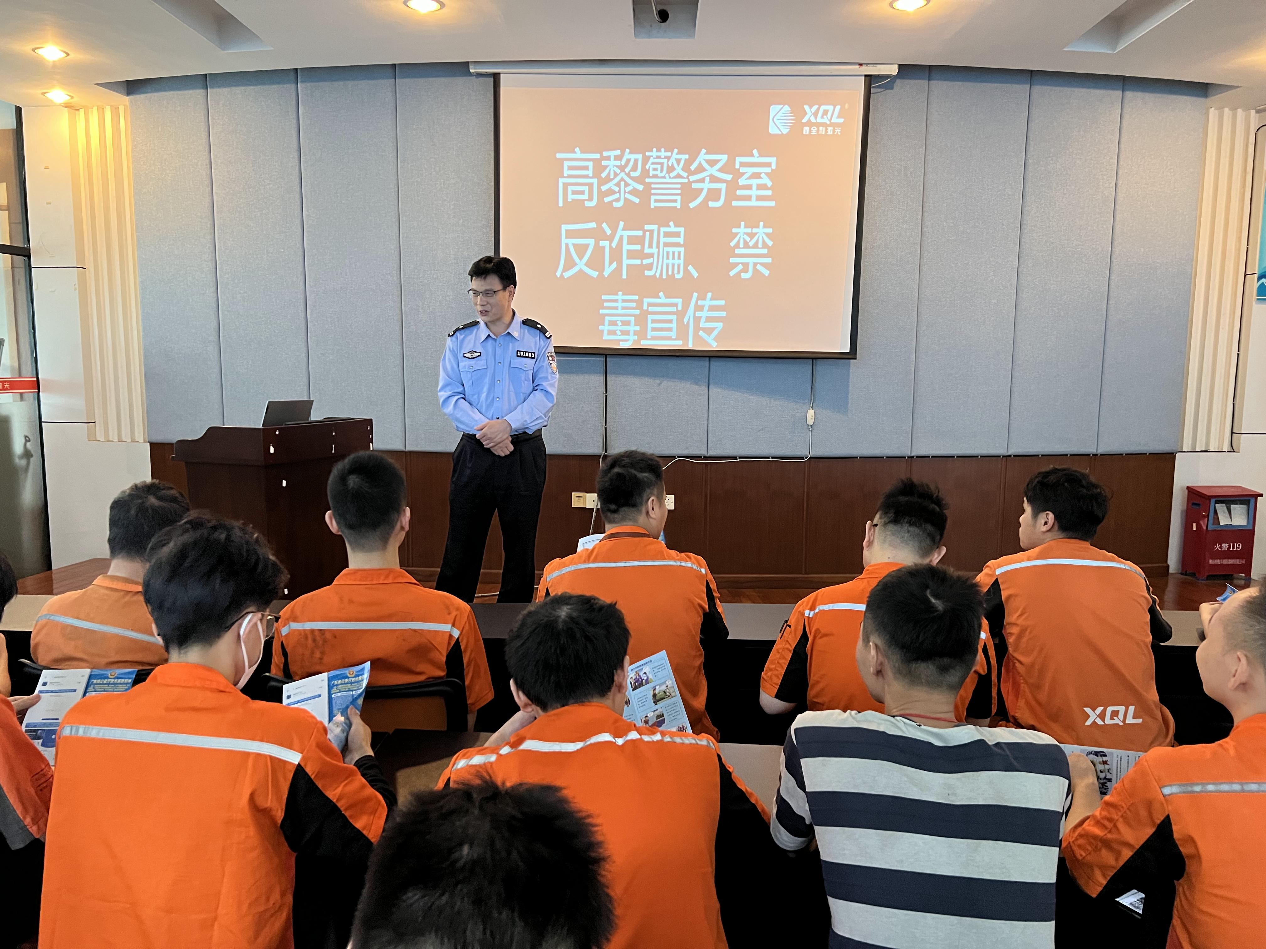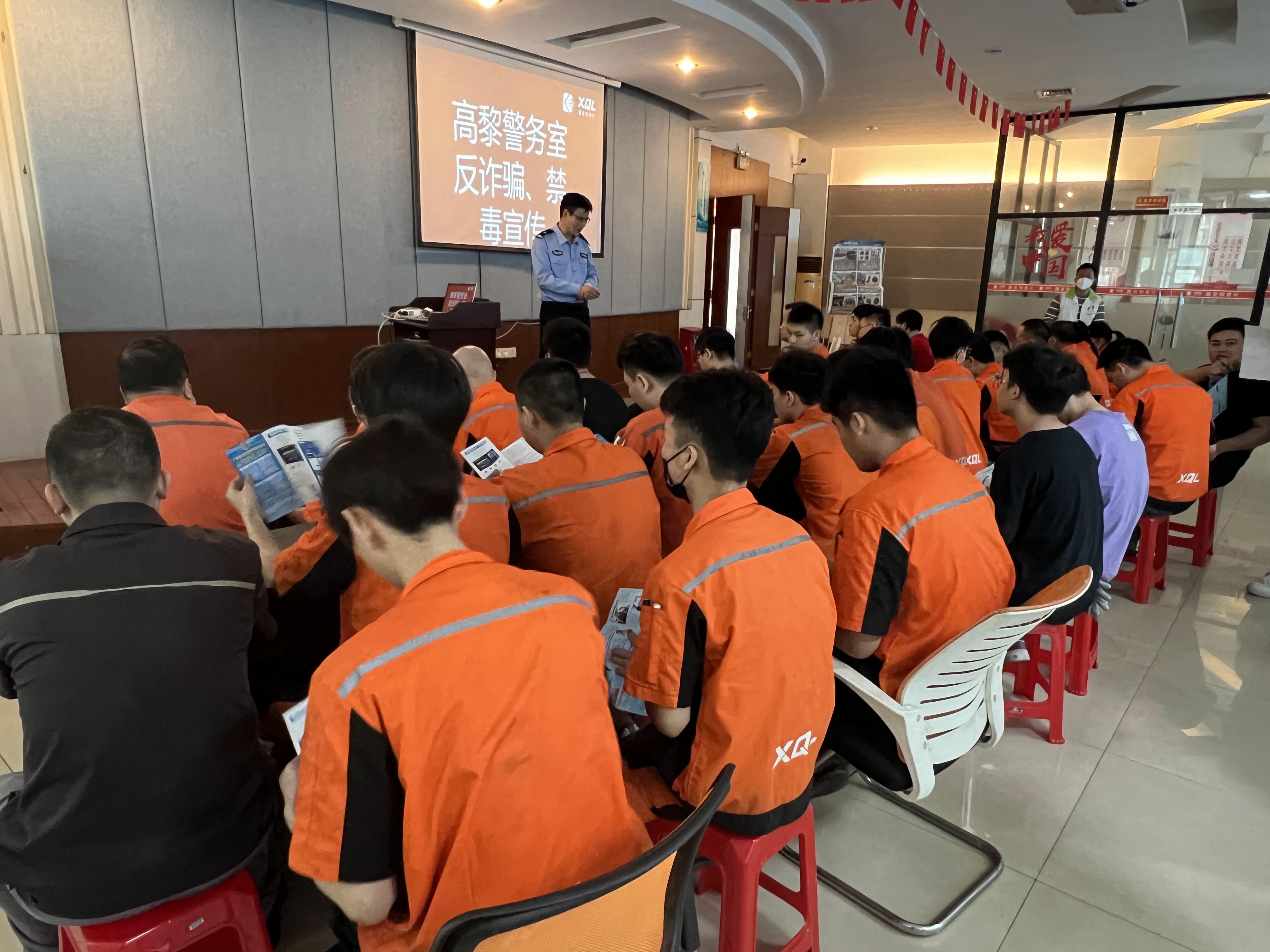 在活動中,高黎警務室工作人員向員工們派發(fā)禁毒、反詐宣傳手冊,同時為員工們耐心講解毒品相關知識及法律條例,使員工們加深毒品對個人、家庭、社會危害的了解,同時向員工們傳達預防電信詐騙知識以及如何采取有效措施進行詳細講解!