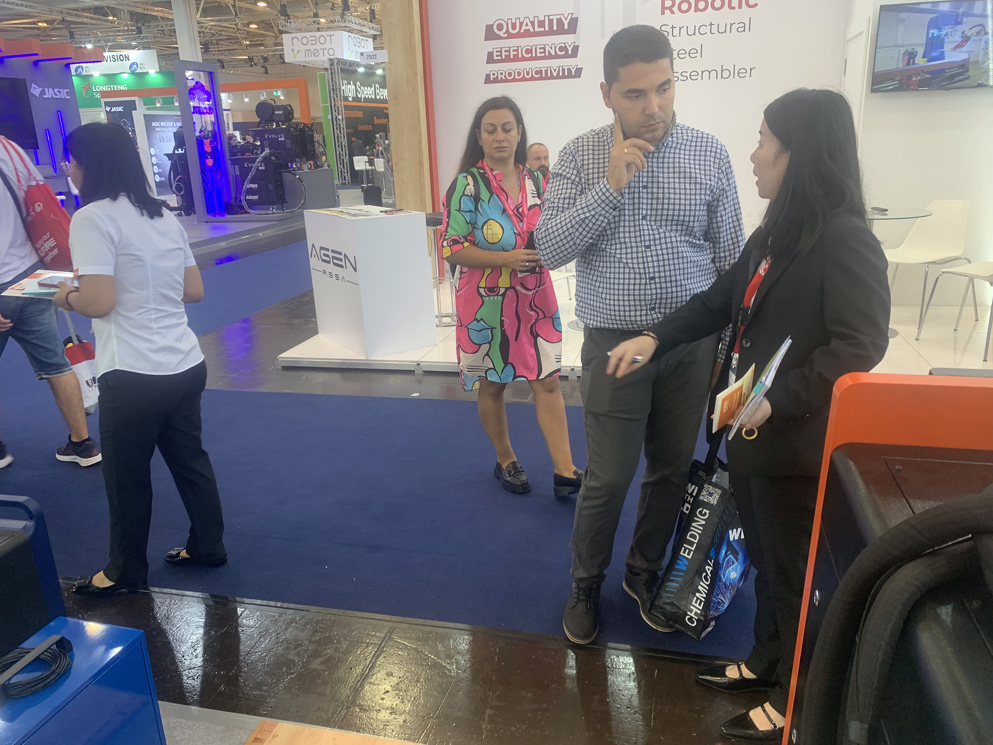 期間,廣東焊接協(xié)會(huì)的一行領(lǐng)導(dǎo)蒞臨我司展位參觀考察,我司董事長王董熱情接待了各位領(lǐng)導(dǎo),并就鑫全利激光的研發(fā)、生產(chǎn)、海內(nèi)外市場等業(yè)務(wù)情況進(jìn)行了詳細(xì)的介紹。