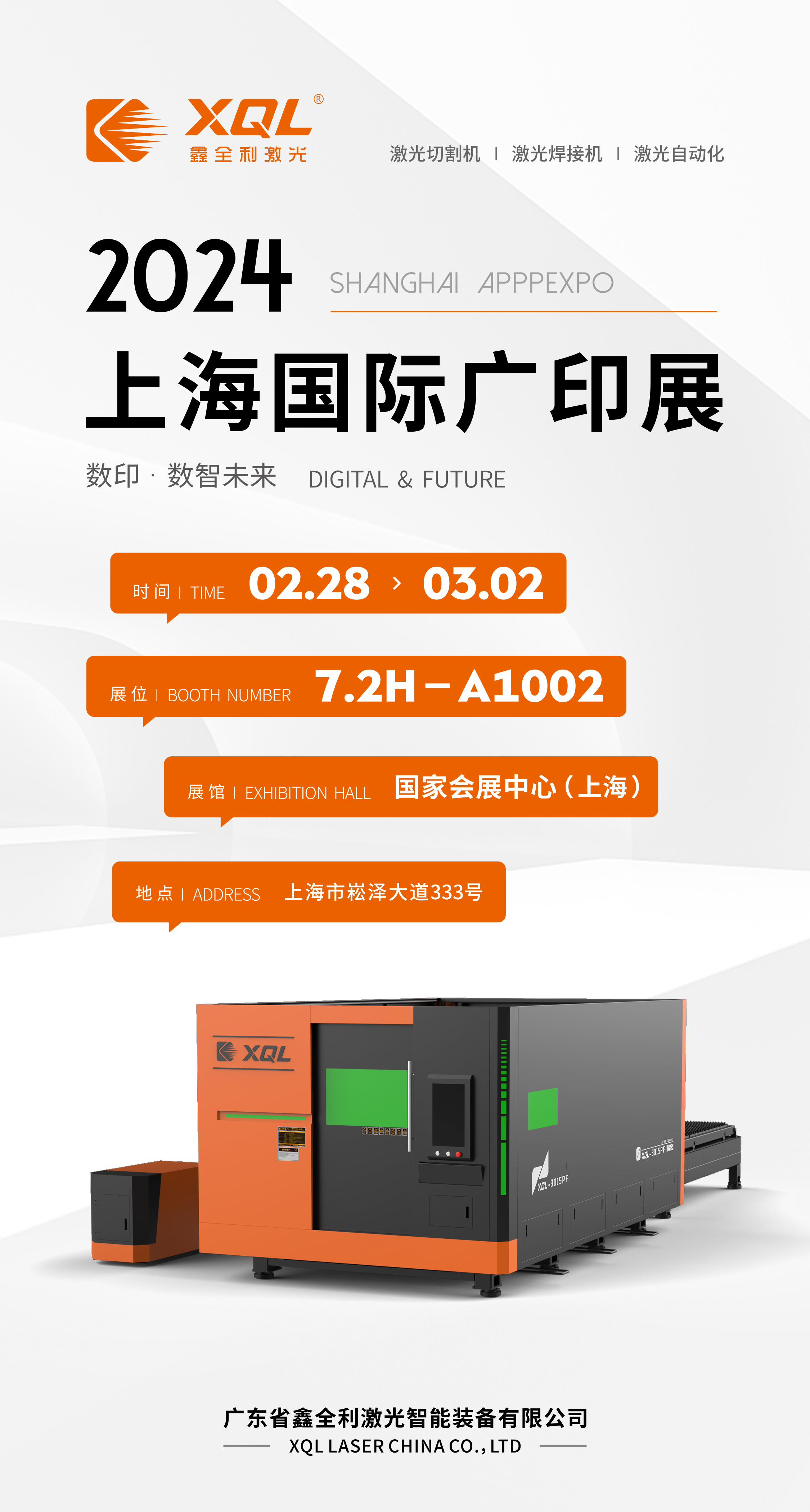 展會邀請丨2月28日-3月2日,鑫全利激光與您相約上海廣印展!