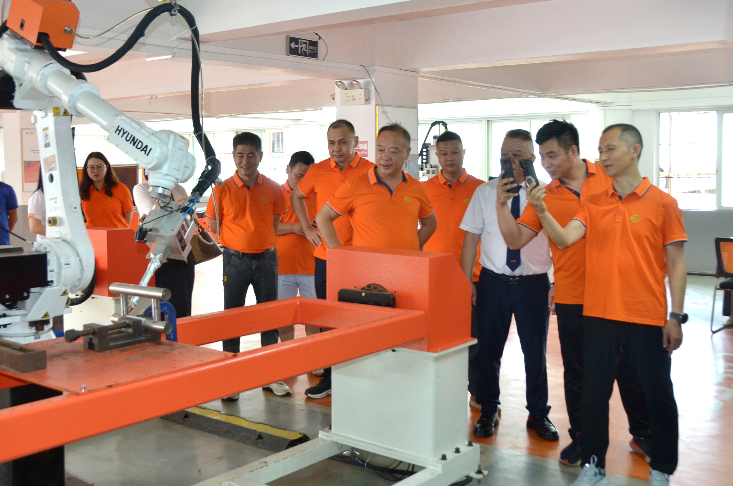 我司陳總帶領(lǐng)協(xié)會(huì)各位領(lǐng)導(dǎo)從高功率激光切割機(jī)到激光焊接機(jī),再到激光復(fù)合激光切割機(jī)的實(shí)切展示,對(duì)各區(qū)域的設(shè)備、零部件所涉及到的生產(chǎn)流程、技術(shù)工藝進(jìn)行介紹。大家在生產(chǎn)車(chē)間駐足觀看,仔細(xì)聆聽(tīng)。