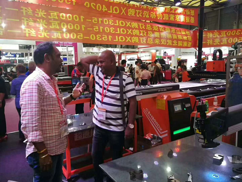 在展會現(xiàn)場,技術(shù)人員對XQL-3015雙驅(qū)光纖激光切割機(jī)進(jìn)行了實(shí)際的操作演示,對不同厚度的金屬板材切割,整個(gè)切割過程耗時(shí)不過數(shù)秒。