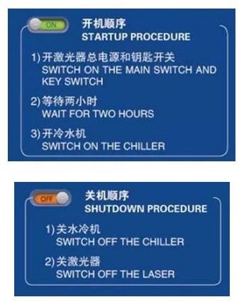 每次激光切割機(jī)重新開機(jī)時(shí),需要按照下面正確的開關(guān)機(jī)順序來(lái)操作