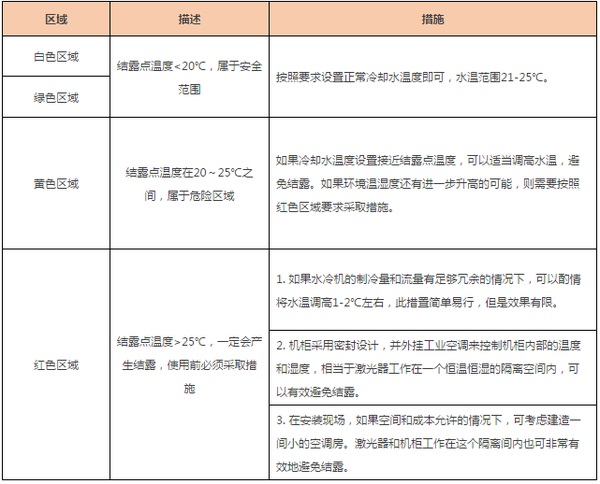 結(jié)露點(diǎn)表中不同色塊對(duì)應(yīng)的預(yù)防措施