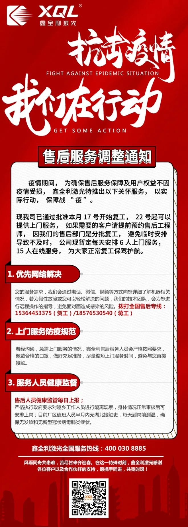關(guān)于疫情期間,鑫全利售后服務(wù)調(diào)整通知!
