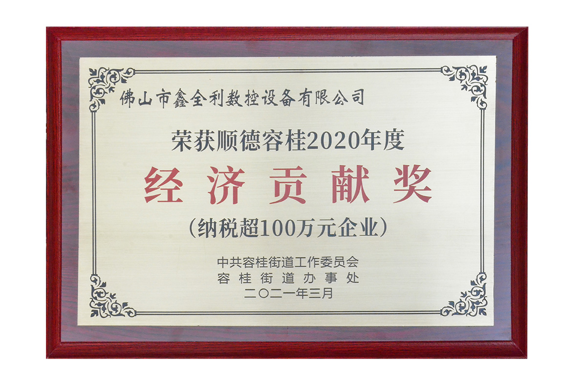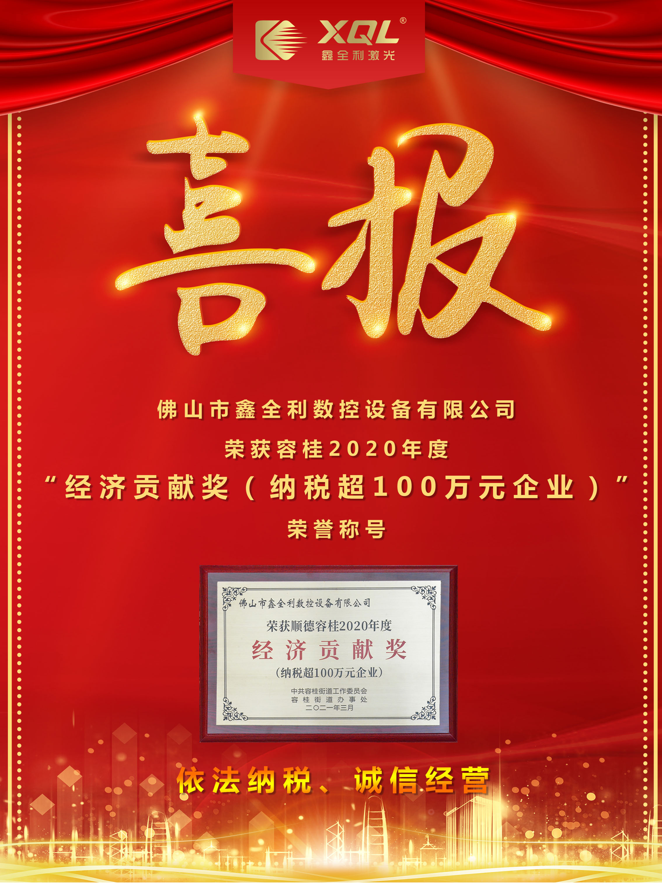 鑫全利激光榮獲容桂2020年度“經(jīng)濟貢獻獎(納稅超100萬元企業(yè))”榮譽稱號!