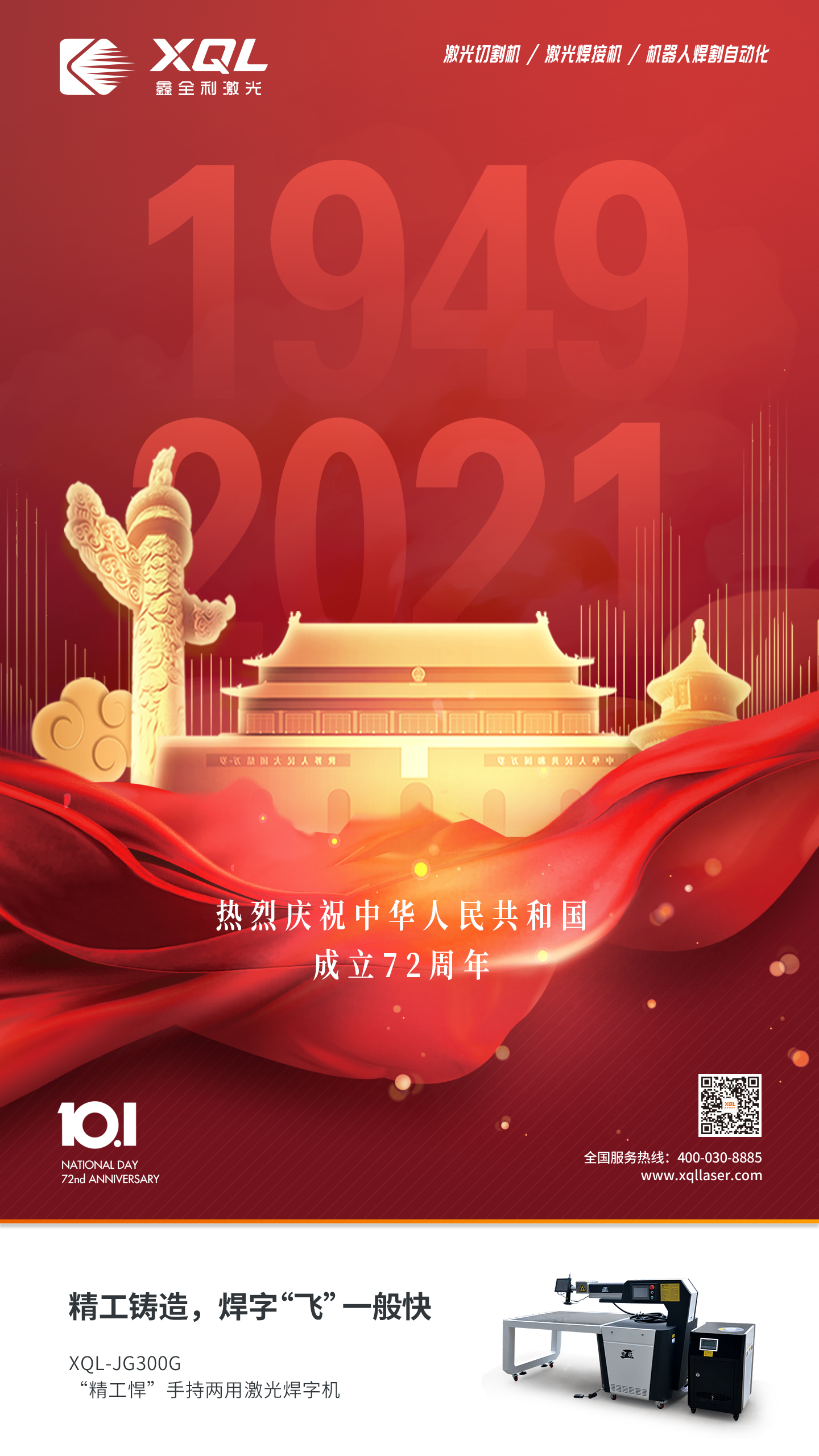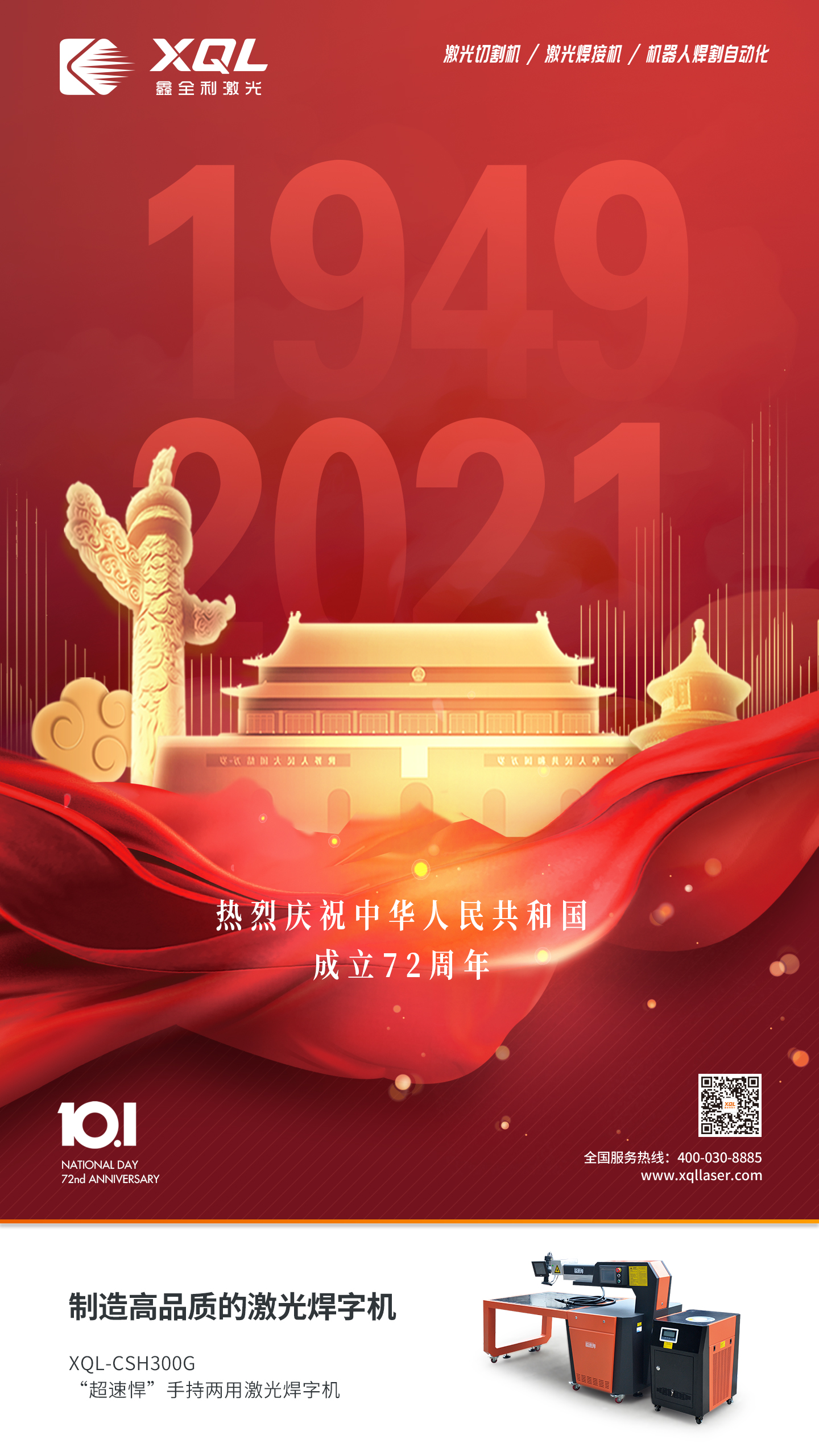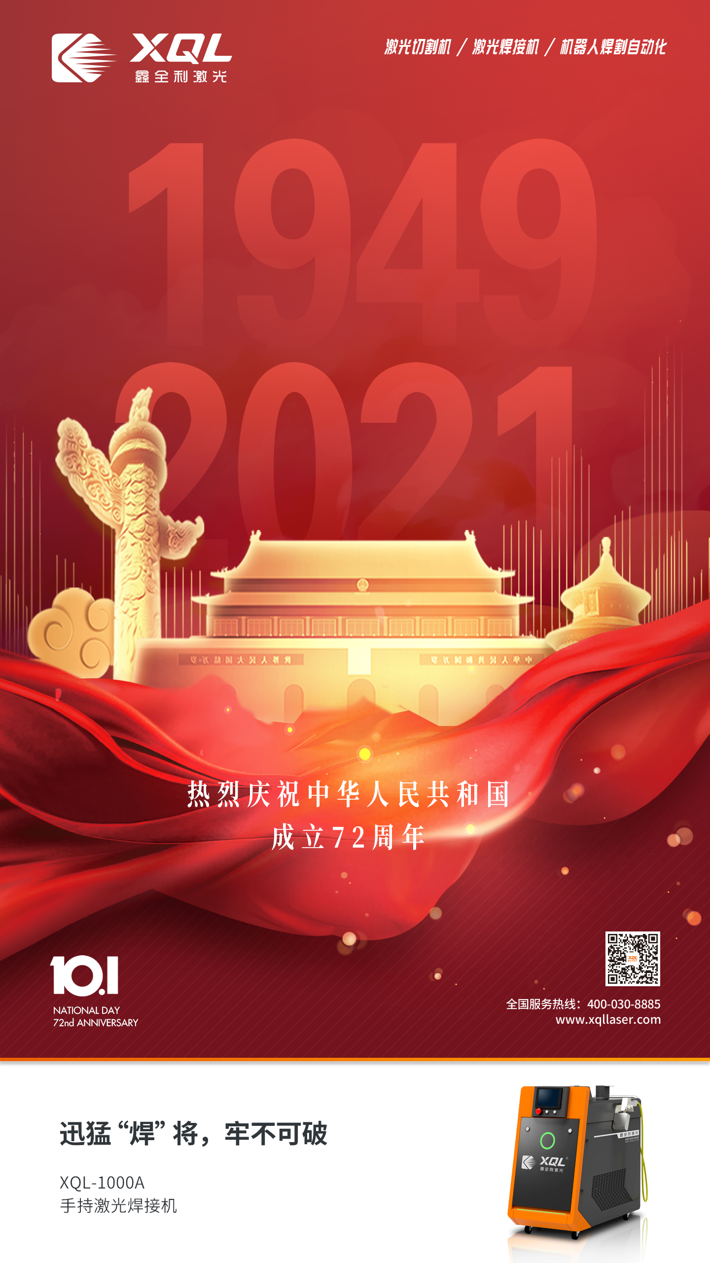 如果信念有顏色,那一定是中國(guó)紅,鑫全利激光祝愿祖國(guó)繁榮昌盛、山河無(wú)恙。