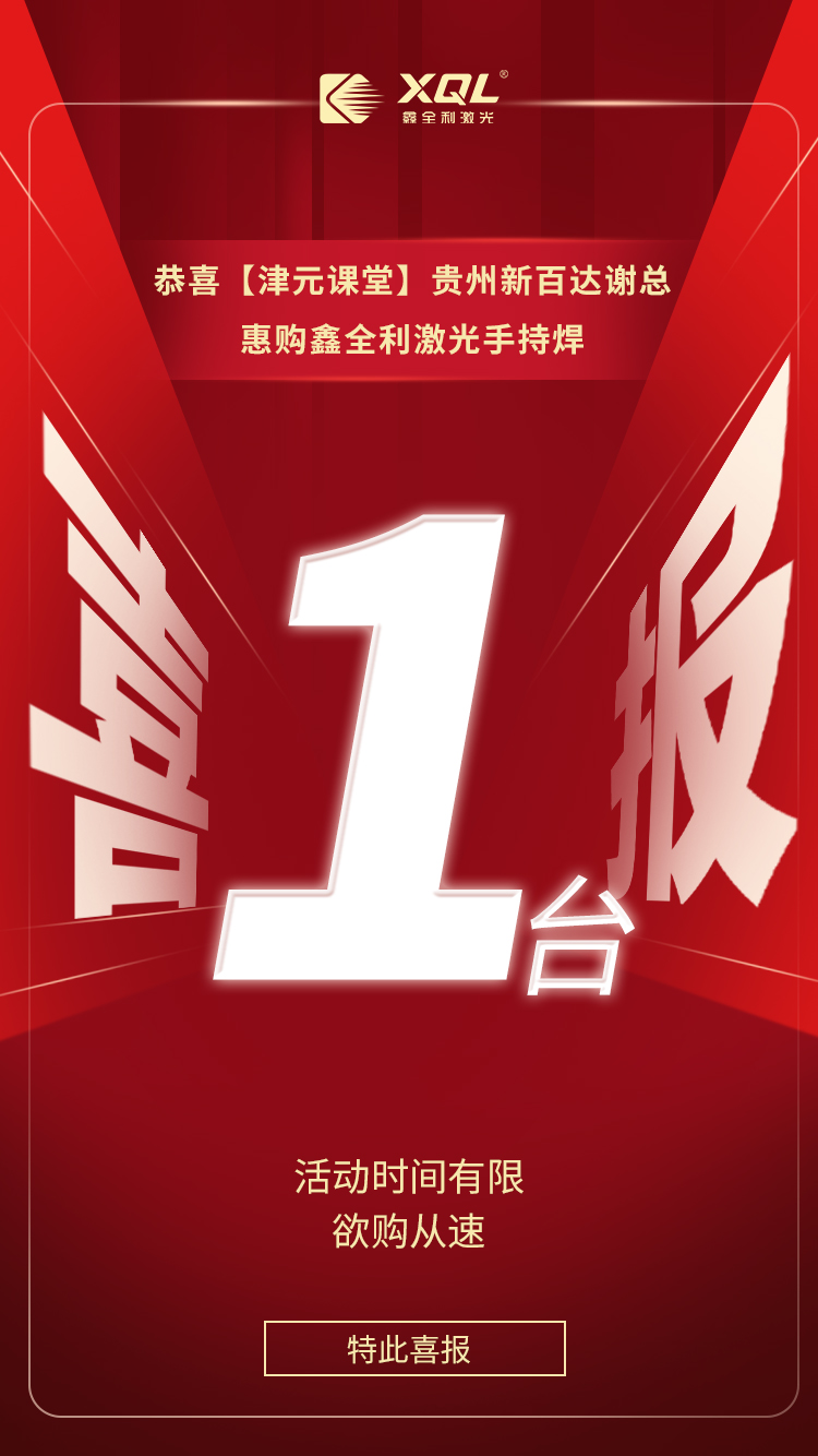 恭喜【津元課堂】貴州新百達(dá)謝總惠購(gòu)鑫全利激光手持焊一臺(tái);手持激光焊帶的福利,老板不僅再也不擔(dān)心招不到焊工,而且普通人一學(xué)就會(huì),焊接效果也得到了保障,解決你焊工貴、焊工慢、焊工難找等問(wèn)題。