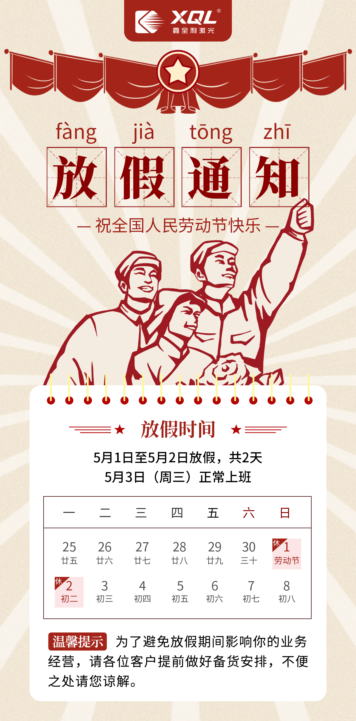 - [2023.04.22]鑫全利激光五一勞動(dòng)節(jié)放假通知