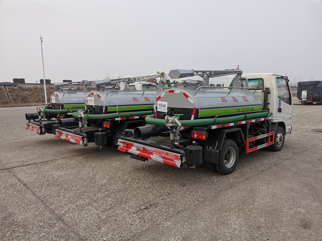 上裝配置:罐體容積約3立方,武鋼Q235自動焊接,壁厚5mm,封頭6mm,標配5噸油泵真空泵,吸力大、吸程遠,可自吸自排。標配防溢閥,視糞窗,罐后自流口1個,罐旁洗手裝置,濯體頂?shù)鯒U270°旋轉,帶8米吸糞管1根。