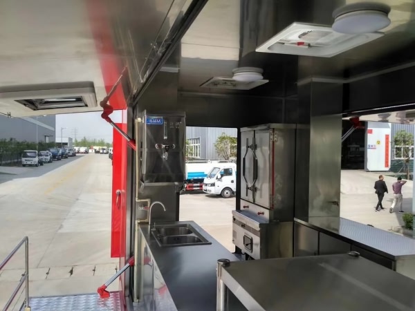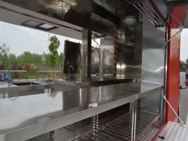 外部配置:外部照明、遮陽(yáng)棚、換氣扇等。東風(fēng)天錦餐車,后勤保障炊事車設(shè)計(jì)原理基于房車、流動(dòng)餐飲車、流動(dòng)售賣車的外觀、布局、功能性等集合為一體,以售賣快餐、冷飲為主,車型弧度美觀,大氣,配備標(biāo)志性公司圖文設(shè)計(jì),以及個(gè)性化車貼,更能引起消費(fèi)者眼球。一側(cè)車廂展開(kāi)作為賣窗口;另一側(cè)配備遮陽(yáng)棚,車廂內(nèi)飾為不銹鋼,配備配備不銹鋼爬梯、護(hù)欄、凈水箱,污水箱,雙眼灶,蒸飯車,冰箱等。不銹鋼整體壁柜,工作臺(tái),發(fā)電機(jī),空調(diào)等;具體配置以及每個(gè)客戶不同要求,我公司采用一對(duì)一服務(wù),歡迎咨詢!