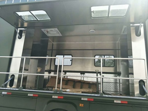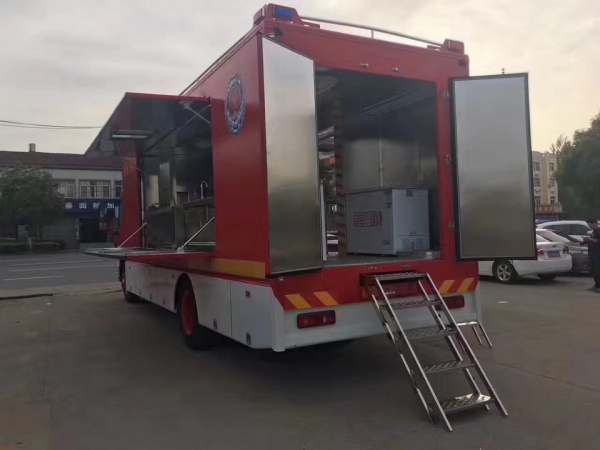 為滿足市場需求,東風(fēng)移動炊事車、野外餐廚車已完工下線,在普通移動炊事車基礎(chǔ)上改進了先前的技術(shù)及內(nèi)飾設(shè)備及材料,廂內(nèi)配備有灶臺系統(tǒng)、抽排風(fēng)系統(tǒng)、食品前處理系統(tǒng)、食品蒸煮炒系統(tǒng)、食品儲藏系統(tǒng)、供排水系統(tǒng)、供電系統(tǒng)、工作照明系統(tǒng)等。用于為野外搶險救援、施工作業(yè)等團隊提供新鮮熱飯菜。炊事車是根野外執(zhí)行任務(wù)的需要,為提高后勤保障能力,改善野外生存條件而研制的一種新型自行式炊事車,特別適應(yīng)快速反應(yīng)執(zhí)行任務(wù)的需要。適用范圍:應(yīng)急搶險救援等野外工程工作的餐飲及住宿。