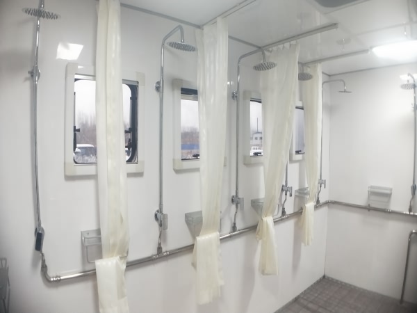 (3)車內(nèi)配制不銹鋼水箱,可汲取符合 時(shí)飲用水標(biāo)準(zhǔn)的地表水,經(jīng)水質(zhì)凈化后,保證 洗浴需要,也可直接使用市政用水;