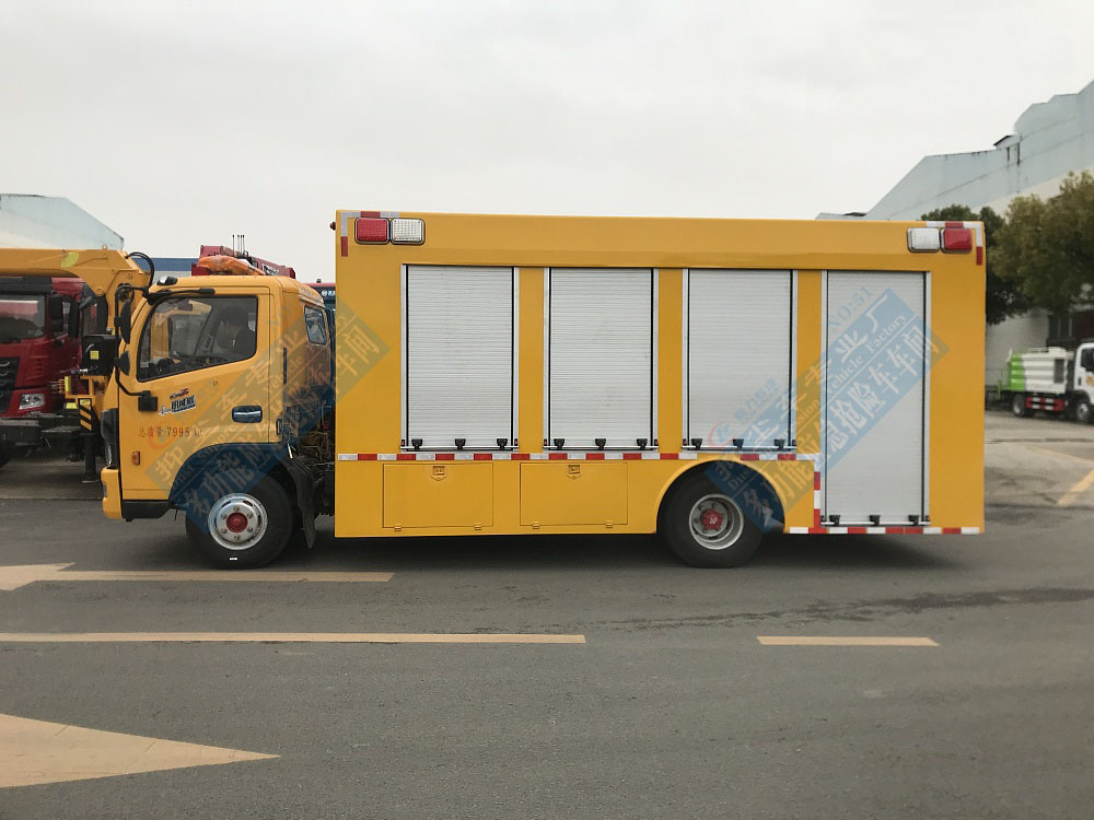 選裝配置:選裝行李架、爬梯、車頂工作臺;選裝不同形狀、結(jié)構(gòu)的**示燈;選裝中隔斷(可選擇開門)、車身兩側(cè)可選開上掀門、盲窗、側(cè)開門;花紋鋁板;加裝設備工具柜、配電箱、發(fā)電機組、水泵、電焊機、空壓機等線路安裝外接電源系統(tǒng)、(室內(nèi)燈光照明、探照燈、高桿照明燈等);繞線盤,還可根據(jù)用戶不同需求加裝不同的維修搶險設備、車身制作專用圖案或標識。