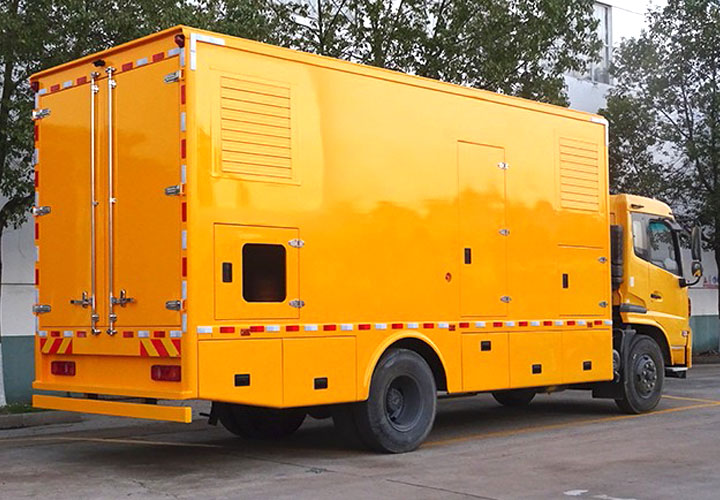 4、柴油發(fā)電機組安裝于廂體內部**,處于車輛載重**,保證車輛行駛平穩(wěn)。
